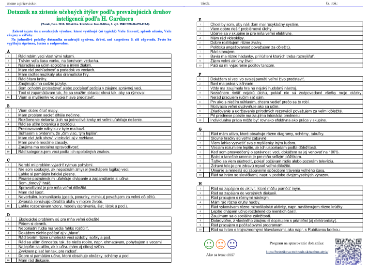 Existuje aj skrátená verzia dotazníka pre I. stupeň ZŠ - overím si to a sprístupním onedlho.